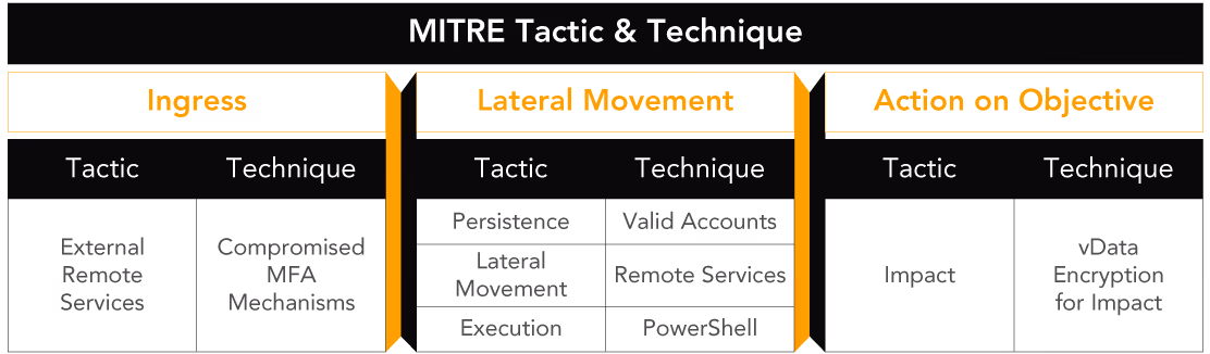 MITRE created the MITRE ATT&CK framework to document attackers’ tactics and techniques used in a breach. To simplify the attacker/intruder tactics, we have condensed the entire MITRE ATT&CK framework tactics into three categories. They are the Ingress Point, Lateral Movement, and Action on Objective.